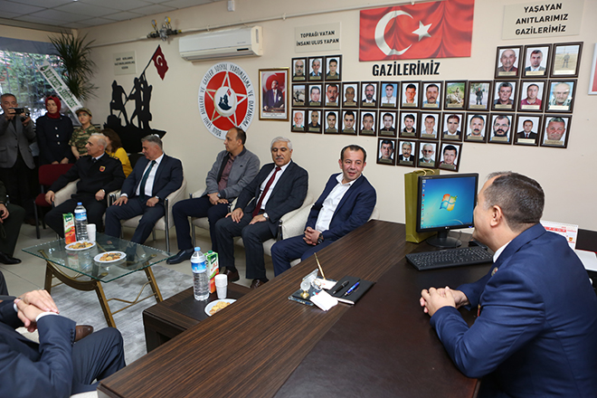 Dernek önünde duaların okunması ile gerçekleştirilen açılışta bir konuşma yapan Bolu Belediye Başkanı Tanju Özcan; “Biz bugün huzur içerisinde bu açılışımızı gerçekleştiriyorsak, bu memleket için kanını dökmüş, canını vermiş şehitlerimizin ve gazilerimizin burada çok önemli bir rolü var. Allah onlardan razı olsun. Burası ile ilgili gelişmeye gelince de, ben Belediye Başkanlığı adaylığım döneminde bu derneğimizi birkaç defa ziyaret etmiştim. Eskiden cadde üzerinde eski İl Özel İdaresi binasındaydı ve oradaki sıkıntı da hem dördüncü katta olması hem de asansörü olmamasıydı. Özellikle gazilerimizin ve şehitlerimizin aileleri, büyüklerimizin oraya çıkamama problemleri vardı. Ya Belediye binası içerisinde ya da çevresinde uygun bir yerde sizin bu probleminizi çözeceğiz demiştik. Burada da dernek yöneticilerimizle görüşmelerimize mutabık kaldı. Sağ olsun derneğimiz burasını da çok güzel bir hale getirmiş. Ben hayırlı olsun diyorum ve şunu da söylemek istiyorum. Biz Bolu Belediyesi olarak her zaman sizlerin yanındayız, iyi ki varsınız” dedi.