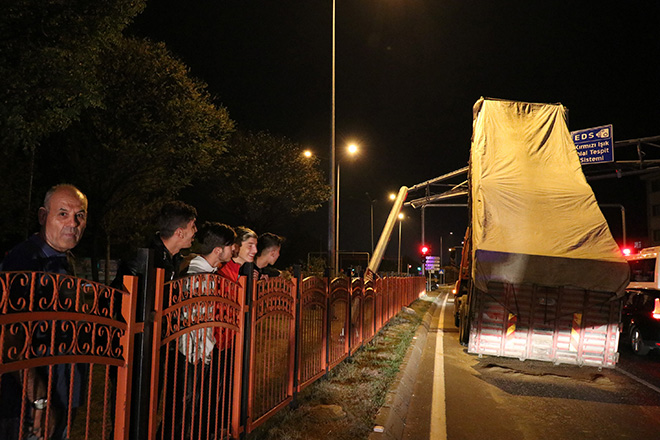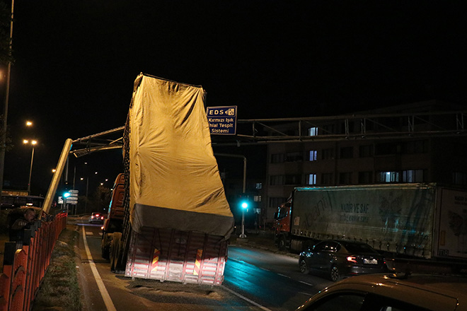 Edinilen bilgiye göre, Ankara istikametine seyir halinde olan Mustafa Can idaresindeki 14 AL 073 plakalı kamyon, YSE kavşağında kırmızı ışık nedeniyle yavaşladığı sırada oluşan arıza nedeniyle kalkan damperi Elektronik Denetleme Sistemi (EDS) direğine çarptı. Çarpmanın etkisiyle üzerine kameraların olduğu direğin bir bölümü büyük zarar gördü. İhbar üzerine olay yerine polis ekipleri sevk edildi. Direğin kamyonun kasasına takıldığının görülmesi üzerine olay yerine vinç istendi. Vinç yardımıyla direğin üzerindeki kameralar söküldü. Daha sonra direğin 3 bölgesinden halatların bağlanmasıyla kamyonun damperi indirilerek araç çekildi. Zarar gören Elektronik Denetleme Sistemi (EDS) direği de vinç yardımıyla ekipler tarafından sökülerek yoldan kaldırıldı. Çevredeki vatandaşların meraklı gözlerle izlediği çalışma sırasında, D-100 karayolu Ankara istikameti uzun süre ulaşıma kapatıldı. Çalışmaların sonlanmasıyla trafik tekrar normale döndü.