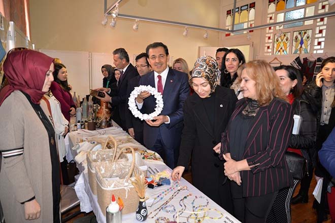 Programın devamında Çevre ve Şehircilik Bakanlığı’nın atıkları geri kazandırmak amacıyla hayata geçirdiği Sıfır Atık Projesi kapsamında Bolu’da 23 kursta 450 kadının atıklardan kazandırdığı el emeği göz nuru ürünlerin yer aldığı sergi açılışı yapıldı ve sergi gezildi. Katılımcılar cam kırıklarından vazo, kâğıtlardan çanta, yumurta kolisinden kapı süsü yaparak atıkların sanat eseri haline dönüştüğünü görünce hayranlıklarını gizleyemediler. Sergi gezisi sonrasında Bolu Valisi Ahmet Ümit ve eşi Şengül Ümit, el emeği göz nuru eserleri hazırlayan kursiyerlere teşekkür ettiler. Vali Ümit, “Bir işe kadın eli değince ne olacağını bir kez daha gördük. Ellerinize, yüreklerinize sağlık” dedi.