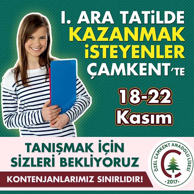 Özel Çamkent Anadolu Lisesi kurucusu Ebru Akın, bu ara tatilin YKS’ye girecek olan öğrenciler için dönem başından bu zamana kadar eksiklerini gidermek, anlamadığı konular üzerinde yoğunlaşmak ve istedikleri hedefe ulaşmak için bulunmaz bir fırsat olduğunu belirterek sundukları kamp programı ile de öğrencilerin bu tatili fırsata çevirmelerini hedeflediklerini vurguladı. Kamp için yoğun ilginin olduğunu ve sınırlı kontenjanlar ile en fazla 16 kişilik sınıflarda eğitim verdiklerini hatırlatan Ebru Akın, tanışmak ve bilgi almak isteyen tüm öğrencileri Özel Çamkent Anadolu Lisesi’ne davet etti.