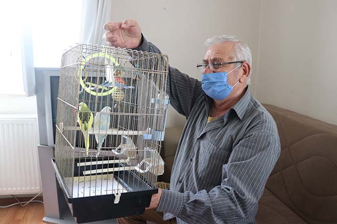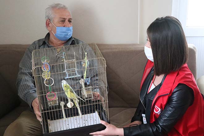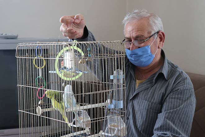 Bolu’da, 4 yıldır eşinden ve çocuklarından ayrı yaşayan 65 yaşındaki Ahmet Avcıoğlu, korona virüs salgını sonrası getirilen yasak nedeniyle dışarı da çıkamayınca yalnızlığını daha çok hissetmeye başladı. Kültür mahallesi Vişne sokaktaki evinde tek başına daha fazla vakit geçiremeyen Avcıoğlu, evde kendisine arkadaşlık yapması için 112 Acil Komuta Merkezi’ni arayarak muhabbet kuşu istedi. Avcıoğlu’nun isteğinin Vefa Sosyal Hizmet Grubu’na iletilmesinin ardından, bir hayırseverin de yardımıyla yaşlı adama 2 adet muhabbet kuşu alındı.