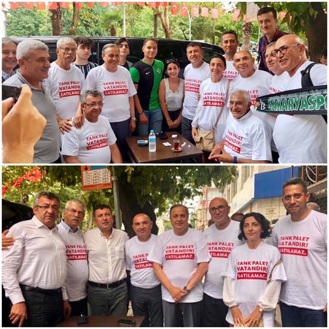CHP, Tank Palet’in dolaylı yoldan özel sektöre kiralanmasının önünü açan ASFAT’a devredilmesiyle ilgili olarak Sakarya Kent Meydanı’nda Salı günü 18.00 sıralarında oturma eylemi başlattı. Binlerce kişinin katıldığı protesto eylemine çevre illerin yanı sıra Bolu il ve İlçe örgütleri üyeleri de katılarak destekverdi. “Tank Palet vatandır, satılamaz” yazılı tişörtlerin giyildiği ve pankartın açıldığı 12 saat süren oturma eylemine CHP’li vekiller Engin Özkoç, Engin Altay, Onursal Adıgüzel, Orhan Sarıbal, Veli Ağbaba, Seyit Torun, Fethi Açıkel, Tuncay Özkan, Mehmet Ali Çelebi, Mahmut Tanal, Nurhayat Altaca, Tahsin Tarhan, Kani Beko, Ali Mahir Başarır, Sibel Özdemir, partililer, çok sayıda sivil toplum kuruluşu temsilcileri ve yurttaşlar katıldı.