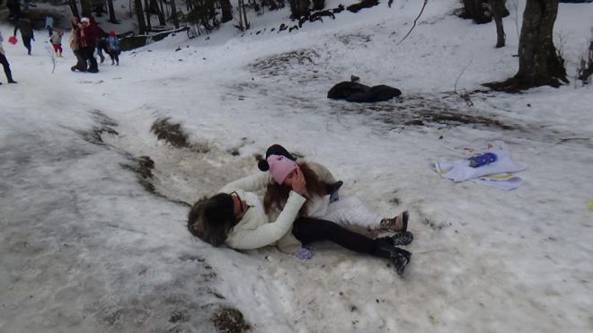 Eğlenceli anlar yaşadıklarını söyleyen Muhammed Akman, "Çok eğlenceli bir gün geçirdik. 15 kişilik aile grubu ile geldik. Kayıyoruz, çok eğlendik" diye konuştu.