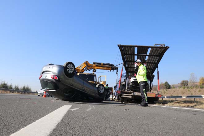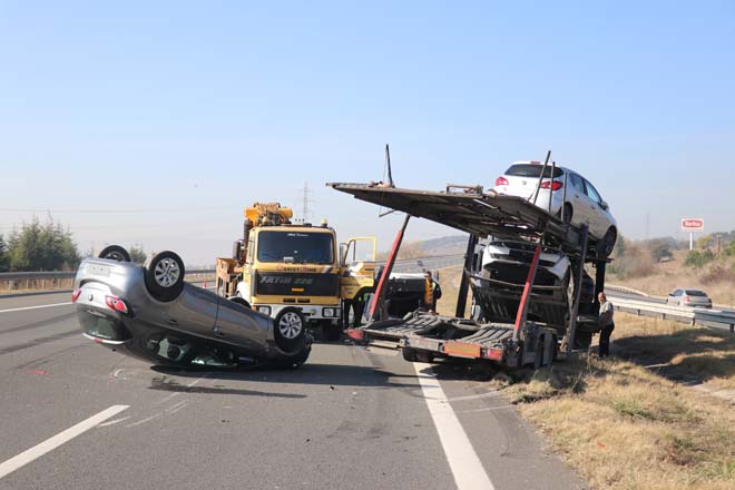 Kaza, saat 10.30 sıralarında TEM Otoyolu Çaydurt mevkii Ankara istikametinde meydana geldi. Edinilen bilgiye göre, Kocaeli’den aldığı sıfır model 8 adet otomobili Mersin’e götüren Mehmet Uğur idaresindeki 06 JSY 73 plakalı tır, seyir halinde olduğu sırada dorse kısmı çekici bölümünden ayrıldı. Lüks otomobillerin bulunduğu dorsenin çekiciden ayrılmasıyla yolda sürüklenen tır, ters yöne dönerek refüje çıkarak durdu. Kazada, sıfır model otomobillerden 2’si yola savrularak kullanılamaz hale geldi. Tırda bulunan diğer 6 otomobilde ise maddi hasar oluştu. Kazadan yara almadan kurtulan sürücü Uğur’un ihbarı üzerine olay yerine polis ekipleri ve çok sayıda çekici sevk edildi. Yola savrulan araçlar çekici yardımıyla kaldırılırken, tırda bulunan otomobiller ise, kontrollü bir şekilde indirildi. Kaza nedeniyle bir süre tek şeritten sağlanan trafik, araçların yoldan kaldırılmasıyla tekrar normale döndü.