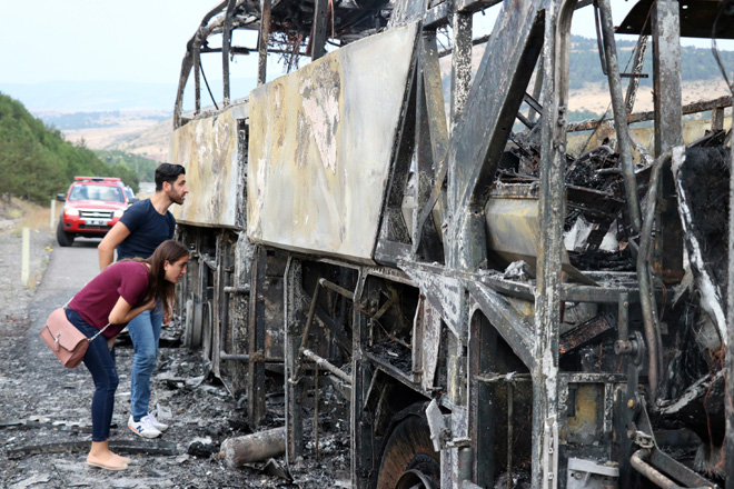 Olay, saat 05.45 sıralarında TEM Otoyolu İstanbul istikameti Cankurtaran mevki'inde meydana geldi. Edinilen bilgiye göre, Çorum’dan İstanbul’a seyir halinde olan Sabri Çolak idaresindeki 34 FA 7999 plakalı otobüste, henüz bilinmeyen bir nedenle yangın çıktı. Dumanların otobüsün içine girmesi üzerine sürücü Çolak aracı emniyet şeridinde durdurdu. Otobüste bulunan 50 yolcunun panik halinde araçtan inmesinin ardından otobüs alev alev yandı.