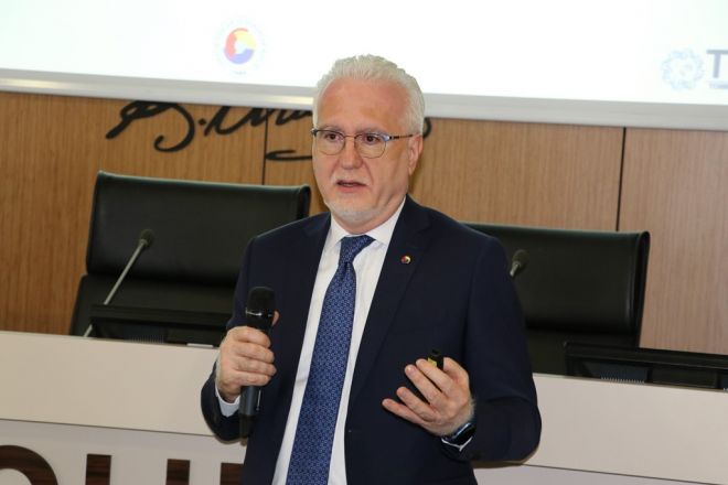 Programda TOBB Ticaret Merkezleri ve TOBB Şikago Ticaret Merkezi Genel Müdürü Volkan Palaz ise ABD’nin en önemli ticaret ve lojistik merkezlerinden biri olan Şikago’da, Türk ürünlerinin Amerikan pazarına daha kolay girebilmesi için satış, pazarlama, depolama, uçtan uca lojistik vb. konularında katma değerli hizmetler sunan TOBB Şikago Ticaret Merkezi hakkında bilgiler verdi.