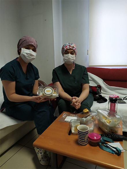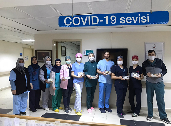 Türk Kadınlar Konseyi Derneği Bolu Şubesi, yaşadığımız olağanüstü pandemik kriz döneminde en ağır yükü büyük özveri ile taşıyan sağlık personellerine minnet ve teşekkürlerini iletmek amacıyla, gönüllü yardımsever hanımlarla birlikte organize bir program çerçevesinde Abant İzzet Baysal Üniversitesi ve Köroğlu devlet hastanelerindeki yoğun bakım ve acil servislerdeki sağlıkçılara el emeği ile hazırladıkları unlu mamul kurabiye ve çörekleri; özel dikim maske takviyeleri ile birlikte teşekkürlerinin ifadesi olarak ulaştırdılar..