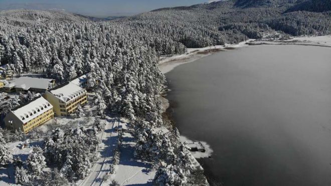 Bolu’nun en önemli turizm merkezlerinden birisi olan Abant Tabiat Parkı’nda 3 gün boyunca süren yoğun kar yağışının ardından kar kalınlığı yarım metreyi geçti. Kent merkezine 42 kilometre mesafede bulunan ve yılın 4 mevsimi yüz binlerce tatilcinin ziyaret ettiği Abant Tabiat Parkı içerisindeki gölün yüzeyi buzla kaplandı. Hava sıcaklığının bu gece sıfırın altında 32 derece ölçülmesiyle Türkiye’nin en soğuk ili olarak kayıtlara geçen Bolu’da, tatil için Abant’ı tercih eden vatandaşlar soğuk havaya rağmen karın tadını çıkardı. Donmuş gölle birlikte bol bol hatıra fotoğrafı çektiren tatilciler, faytonlarla göl çevresinde tur attı.