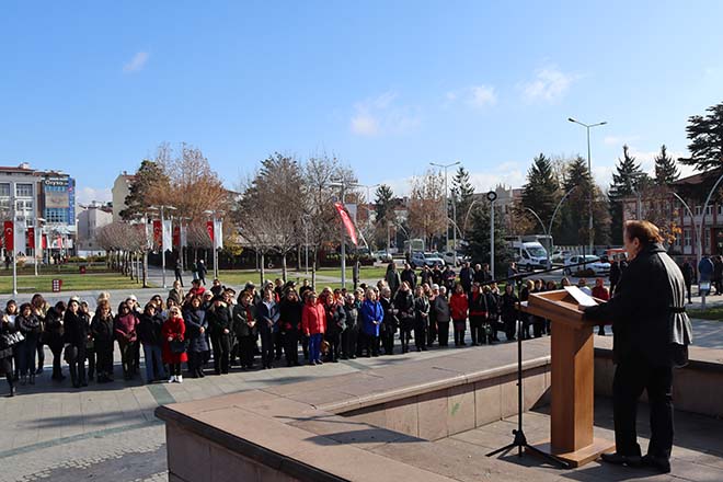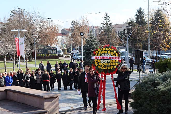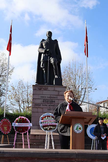 Saygı duruşu ve İstiklal Marşının okunmasının ardından gerçekleştirilen Çelenk koyma töreni sonrasında konuşan Türk Kadınlar Birliği Bolu Şube Başkanı Aygün Bandakçıoğlu günün anlam ve önemine dikkat çekerek şu ifadeleri kullandı; “5 Aralık Türk Kadınına seçme ve seçilme hakkının verilmesinin 85’inci yıldönümü nedeniyle bizlere bu hakkı tanıyan yüce Atatürk’e minnet ve saygılarımızı sunuyoruz. 5 Aralık genç Türkiye Cumhuriyeti’nin en büyük ve en manalı devrimlerinden biridir. Bu devrim Atatürk’ün Türk kadınına verdiği değerin tarihsel göstergesidir. Tarihsel diyorum. Çünkü Türk kadını u hakka birçok büyük ve medeni milletlerden önce kavuşmuştur. Bu hakkın Fransa’da 1994’te, İtalya’da 1945’te, Belçika’da 1948’de, Japonya’da 1950’de, Yunanistan’da 1952’de, İsviçre’de 1971’de, Portekiz’de 1976’da tanınmış olduğunu söylersek tarihsel tanımında yanılmamış olduğumuzu görürüz.Atatürk bizim bu önceliğimizi şu sözleriyle ifade etmektedir. Medeni memleketlerin birçoğunda kadından esirgenen bu hak bugün Türk kadının elindedir. Ve onu salahiyet ve liyakatle kullanacaktır.”Genç Türkiye Cumhuriyeti’nin her toplumsal kademesinde öncülük eden kadınlara ilk siyasal hakları 1930 yılında çıkarılan Belediyeler Kanunu ile verildi. Ardından 1934 yılında Malatya Milletvekili İsmet İnönü ve 191 arkadaşının verdikleri bir yasa değişikliği teklifi ile Türk Kadını milletvekili seçilme hakkını kazandı. 8 Şubat 1935’de meclise 18 kadın milletvekili girdi. Ancak 2000’li yıllarda nüfusun yarısını oluşturan kadınların mecliste temsil oranı yok denecek kadar az. Kadın milletvekili sayısı erkek milletvekillerinin sadece %17’si.Unutmamalıdır ki kadınımızın elde ettiği hakların tümü Cumhuriyetin eseridir. Bugün kadın haklarına sahip çıkmanın yolu cumhuriyete, Atatürk İlke ve Devrimlerine sahip çıkmaktan geçmektedir. Ulusal Kurtuluş mücadelesinde erkeklerle omuz omuza işgalcilere karşı mücadele veren Türk kadını hak ettiği yere geldiğinin bilincindedir. Bizlere bu imkânları sağlayan Büyük Atatürk’ü saygıyla minnetle anıyoruz”