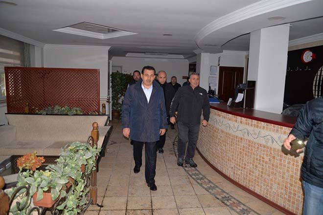 Vali Ahmet Ümit’in Polisevi incelemelerinde, Bolu İl Emniyet Müdürü Armağan Adnan Erdoğan, İl Özel İdaresi Genel Sekreteri Sırrı Köstereli, İl Emniyet Müdür Yardımcıları, İl Özel İdaresi yetkilileri ve mühendisleri ile çatı onarımını üstlenen müteahhit firma temsilcisi de hazır bulundu. Yangında çatısı tamamen yanan ve söndürme çalışmaları sırasında odaları hasar gören Bolu Polisevi’nde incelemelerde bulunan Bolu Valisi Ahmet Ümit, ilk olarak meydana gelen yangının ihbar saati, müdahale süresi, konaklayan kişilerin tahliyesi, Bolu Belediyesi İtfaiye Ekiplerinin olay yerine gelişi ve yangın söndürme çalışmaları hakkında bilgiler aldı. Bolu Polisevi’nin odalarında da incelemelerde bulunan Vali Ahmet Ümit, “Yangın esnasında Polisevimizin 44 odasından 42’si doluydu ve 74 kişi konaklıyordu. Dumandan etkilenen 16 kişi hastaneye sevk edildi. Bunların da kontrolleri ve tedavileri ayaktan yapılarak taburcu edildiler. Çok şükür ki böyle büyük bir felaketi can kaybı olmadan sadece maddi hasarla atlattık. Yangın esnasında Polisevimizde konaklayan vatandaşlarımıza ve Emniyet teşkilatımıza geçmiş olsun. Allah beterinden saklasın” dedi.