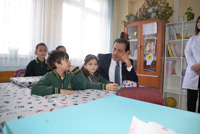Bolu Valisi Ahmet Ümit ve beraberindeki heyet kütüphane açılışının ardından öğrencilerle bir araya geldi. 3. Sınıf öğrencileriyle buluşan Vali Ümit, onlarla sohbet ederek “Sizlerle konuşmak bir arada olmak için ziyarete geldik. Sizleri görünce, sizlerle beraber olunca bütün yorgunluğumuz gidiyor” dedi. Öğrencilere dersleri ile ilgili sorular soran Vali Ümit ile öğrenciler arasında eğlenceli diyaloglar da yaşanırken ziyaretin sonunda Vali Ümit bütün öğrencilere çeşitli hediyeler verdi.