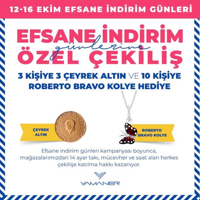 Yamaner Kuyumculuk ‘EFSANE İNDİRİM GÜNLERİ’ 12 Ekim’de Yukarı Çarşı ve Cadde mağazalarında başlıyor