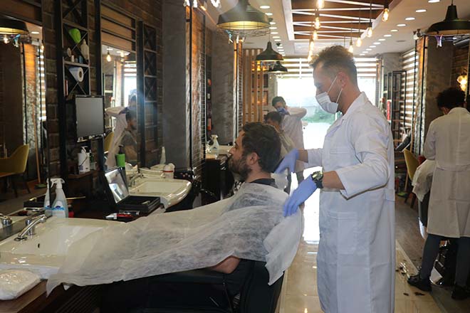 Berber Hüseyin Tayşi, “Bugün bismillah dedik. İnşallah daha hayırlısı olacak. Bu salgın gittikten sonra daha güzel günler bizi bekliyor. Biz 6 kişiyiz. Nöbetleşe sisteme geçtik. Her gün 3 kişi çalışacak. Hem müşterinin hem de kendi sağlığımız için koltuk mesafelerine dikkat ediyoruz. Tek kullanımlık havlular, örtüler. Her müşteri kalktığında koltukları dezenfekte ediyoruz. Randevu sistemiyle çalışıyoruz. Saat başı bir müşteri alıyoruz. Erken bitse de bitmese de koltuklarımızı, taraklarımızı, makaslarımız sterilize ediyoruz. Tek kullanımlık havlu kullanıyoruz ama bizim müşterilerimizden isteğimiz herkes kendi havlusunu getirirse daha hijyenik olacağını düşünüyorum” dedi.