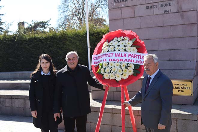 Karsu ve Partililer Anıtpark’ta bulunan Atatürk heykeline çelenk koyarak saygı duruşunda bulundular. Burada kısa bir konuşma yapan CHP Bolu il başkanı Kazım Karsu cumhuriyeti kuran ve yaptığı devrimlerle tüm dünyada hayranlık uyandıran bir partide görev yapmanın onuruyla yeni siyasal döneme başladıklarını vurgulayarak; “Ülkemizin en kritik dönemlerinden birindeyiz. 31 Mart yerel seçimlerinde elde ettiğimiz başarımızı artık daha yüksek bir noktaya taşıyarak ülke genelinde iktidara gelmek istiyoruz. Bunun için hazırız. Yüce Atatürk’ün izinde daha büyük başarılara imza atmak istiyoruz” dedi.