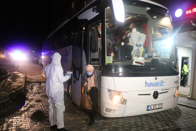 Çin’de ortaya çıkan ve tüm dünyayı etkisi altına alan korona virüs salgını nedeniyle yurt dışında bulunan Türk öğrenciler ve vatandaşlar ülkeye getiriliyor. 7 ülkeden 3 bin 358 öğrencinin Türkiye’ye getirilerek karantina altına alınacağının açıklanmasının ardından Yunanistan’da yaşayan aralarında öğrencilerin de olduğu 39 kişi Bolu’ya getirildi. İstanbul Havaalanı’ndan otobüslerle Bolu’ya getirilen vatandaşlar, geniş güvenlik önlemi altında Bolu İzzet Baysal Üniversitesi kampüsü içerisinde bulunan Kredi ve Yurtlar Kurumu’na bağlı Hayrettin Tokadi Yurdu’na yerleştirildi. Polis, AFAD, UMKE ve Sağlık ekiplerinin hazır bulunduğu yurtta, Yunanistan’dan gelenler parça parça yurda giriş yaptırıldıktan sonra kan örnekleri alınarak odalarına gönderildiler.